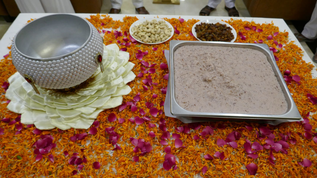 This offering was performed as a symbolic remembrance of the milk rice offering made by Lady Sujatha to Bodhisattva Siddhartha before His Enlightenment.