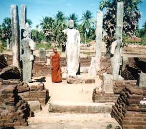 The destruction of the Buddha statues in the Bamiyan Valley aroused sadness, anger and other sentiments among the Buddhists all over the world. Sri Lanka was no exception. At the Rambadagalla Monaragala temple, there was a gathering of children in May 2001. The subject was the destruction of Bamiyan Buddha statues. In response to a 12 year old child's suggestion to take revenge, the learned Egodamulle Amarapoli Thera, the incumbent nayaka Thera of the temple has said "true Buddhism does not encourage revenge or for that matter violence. It is a non-violent doctrine. Instead of thinking destructively why don't we think constructively? The world has lost an invaluable creation of art, a symbol of love and peace. Why don't we create something to replace the lost treasure?"